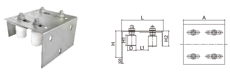 Heavy duty L-bracket with 4 rigid nylon guide rollers. The material of the bracket is Q235 steel, the thickness is 3mm, and it is