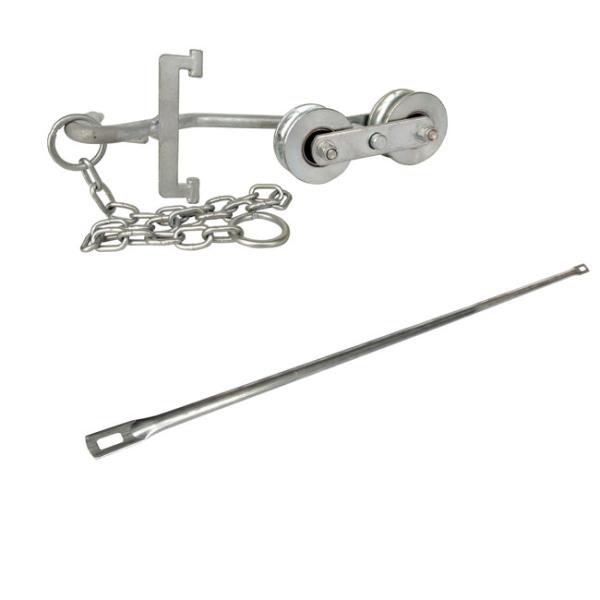 The code number GL10A.02, which has double bearings for better load capacity. The surface of the hanging roller system is galvanized to