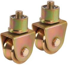 Ferrous metal single bearing sliding gate wheel with internal support with V-groove Used for sliding gates. V-groove door material