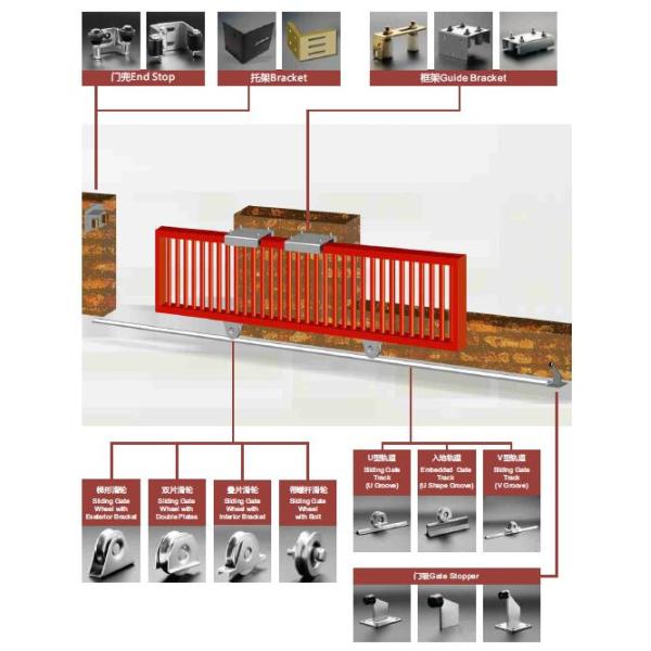 Now we have hundred kinds of products, such as sliding gate wheel, gate track, gate stopper, gate hinge, adjustable hinge, cantilever gate wheel, guide wheel, nylon roller, roller bracket, post cap, gear rack, Steel Bracket with Roller, etc. And our products sell well all over the world because of its high quality and competitive price.